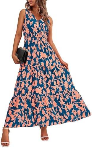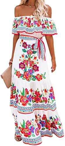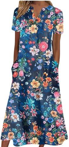 Boho Floral Dress for Womens Short Sleeve A Line Dress Summer Casual Beach Vacation Maxi Dress