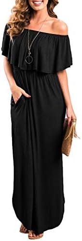 This stunning off-the-shoulder maxi attire combines a casual vibe with elegance, making it a versatile addition to any wardrobe. Designed for comfort, it features a loose fit and ruffle short sleeves that beautifully accentuate the collarbone while providing modest coverage for the upper arms. The chic side split adds a touch of sophistication, allowing for easy movement and a stylish flair. A standout feature is the deep pockets, perfect for keeping essentials close at hand. Its solid colors make it a breathable choice for summer gatherings, beach trips, weddings, or any casual setting. Whether dressed up or down, this dress undoubtedly enhances your style.