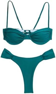 ZAFUL Women’s Solid Spaghetti Strap Bralette Bikini Set Two Piece Swimsuit