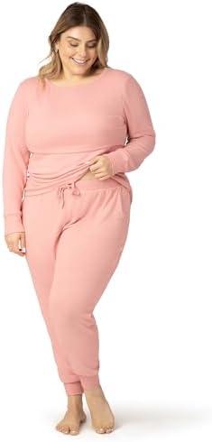 These postpartum pajamas are designed with ease and comfort in mind, making breastfeeding or pumping a breeze. The innovative nursing panel allows you to lift it effortlessly to access the pull-aside v-neck underlayer, providing practical functionality for new mothers. Additionally, the jogger-style pants come equipped with deep pockets, which are perfect for holding essentials like your phone and nursing pads. The thoughtful design also features stylish ribbing detail at the cuffs and neckline, alongside a functional drawstring waistband, ensuring that you feel chic even during those late-night feedings.
