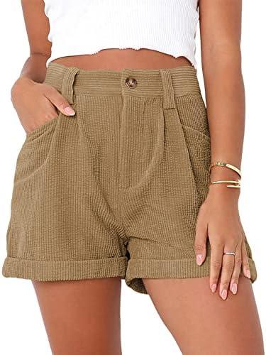 Danedvi Womens Summer Shorts Mid-Waist Cuffed Hem Corduroy Shorts with Pockets
