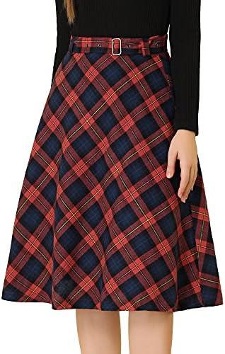 Allegra K Women’s Tartan Plaid High Waist Belted Vintage A-Line Midi Skirt
