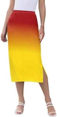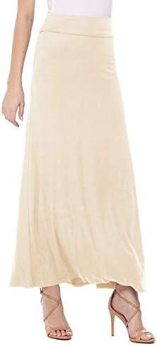 Women’s Solid Pattern Print Office Work Loose Fit Elastic A-line Maxi Skirt/Made in USA