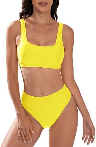 Women’s High Waisted Bikini Sets Sporty Two Piece Swimsuits‌ Solid Color Cheeky High Cut Bathing Suits