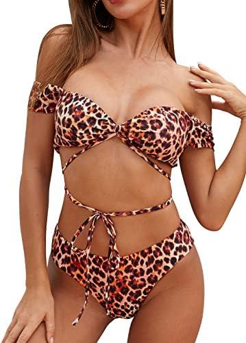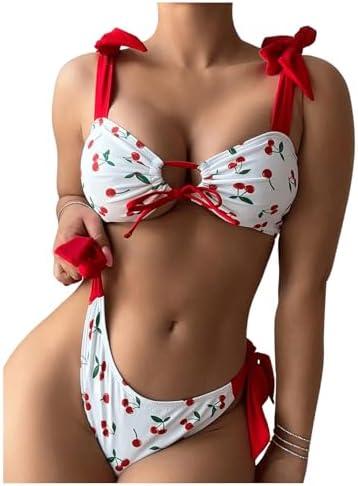 SOLY HUX Women’s Bathing Suit Cute Print Tie Shoulder Bikini Sets Two Piece Swimsuit