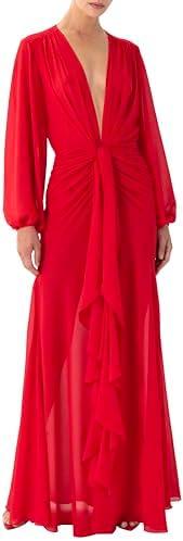 This beautiful dress features a plunging neckline and a front tie, which work together to enhance your shape beautifully. Its striking crimson color adds a touch of vibrancy, making it perfect for a night out or a special occasion. The maxi length flows gracefully, allowing for effortless movement. The design is practical yet stylish, embodying elegance with a modern twist.