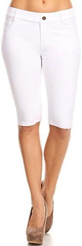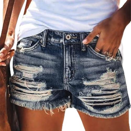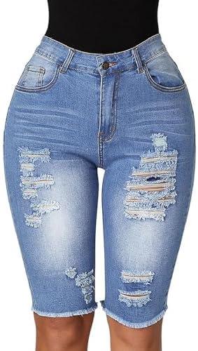 roswear Womens Ripped Stretchy Long Jean Shorts Mid Rise Frayed Cut off Bermuda Shorts