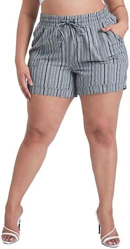YMI Women’s Plus Size Drawstring Waistband Linen Shorts