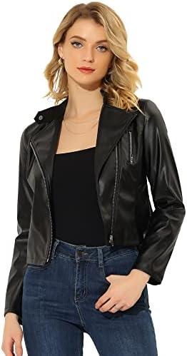 Allegra K PU Crop Jacket for Women’s Slim Fit Zip Up Belted Motorcycle Faux Leather Jackets