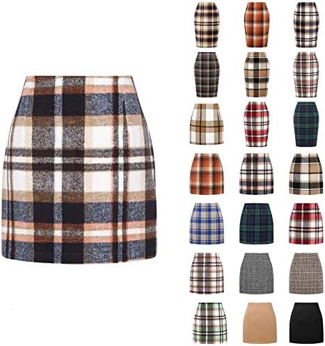 Pencil Plaid Skirts for Women Fall Winter High Waisted Bodycon Knee Length Wool Mini Skirt with Slit