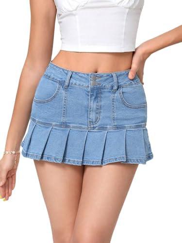 Verdusa Women’s Ruffle Hem Pleated Mini Denim Skirt