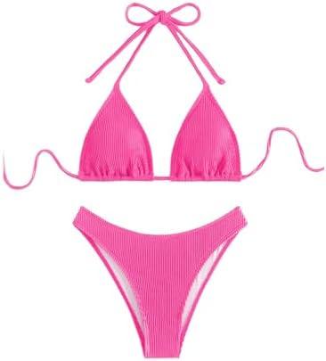 SHENHE Women’s Triangle High Cut Bikini Tie Back 2 Piece Halter Swimsuits Bathing Suit