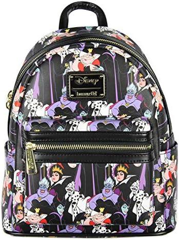 This stylish backpack showcases an all-over print featuring some of Disney’s most iconic villains, including Ursula, Maleficent, Cruella De Vil, Queen of Hearts, and The Evil Queen. Made from high-quality faux leather, it combines a playful theme with durability and practicality. With dimensions of 10.5″ H x 9″ W x 4.5″ D, it is compact yet spacious enough to carry essentials. The adjustable straps and multiple pockets, including one main compartment, a small front pocket, and two side pockets, make it an ideal choice for fans who want to incorporate their love of Disney into their everyday life.