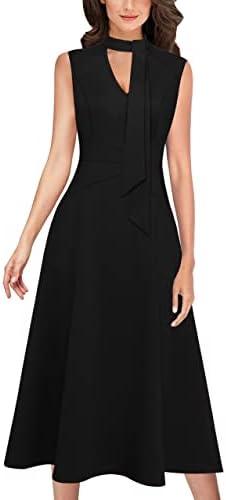 VFSHOW Womens Keyhole Front Patchwork Pockets Pleated Casual Party A-Line Midi Dress