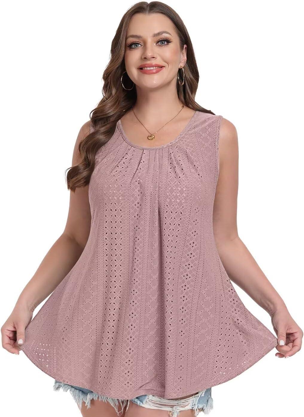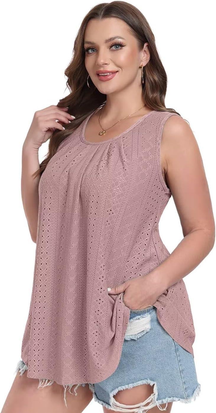 Our initial encounter with‌ these summer ‍tank tops left us appreciating their thoughtful design ⁣tailored specifically for ​plus⁢ size women. ⁣The sleeveless cut combined with a classic scoop neck instantly adds a timeless ‌elegance to ‌casual wear, ⁣while the flowy hem ⁤introduces a graceful touch ​that enhances comfort​ without compromising style. Crafted ⁢from soft polyester⁣ fabric, the tops ‍provide that perfect balance between breathability and relaxation-traits that‌ make them excellent for⁤ warm weather. The eyelet⁢ details subtly elevate the look, giving a ‌hint of flair without being over the top. the tops feel light and roomy, offering freedom of movement that matches a laid-back summer ⁣vibe.
