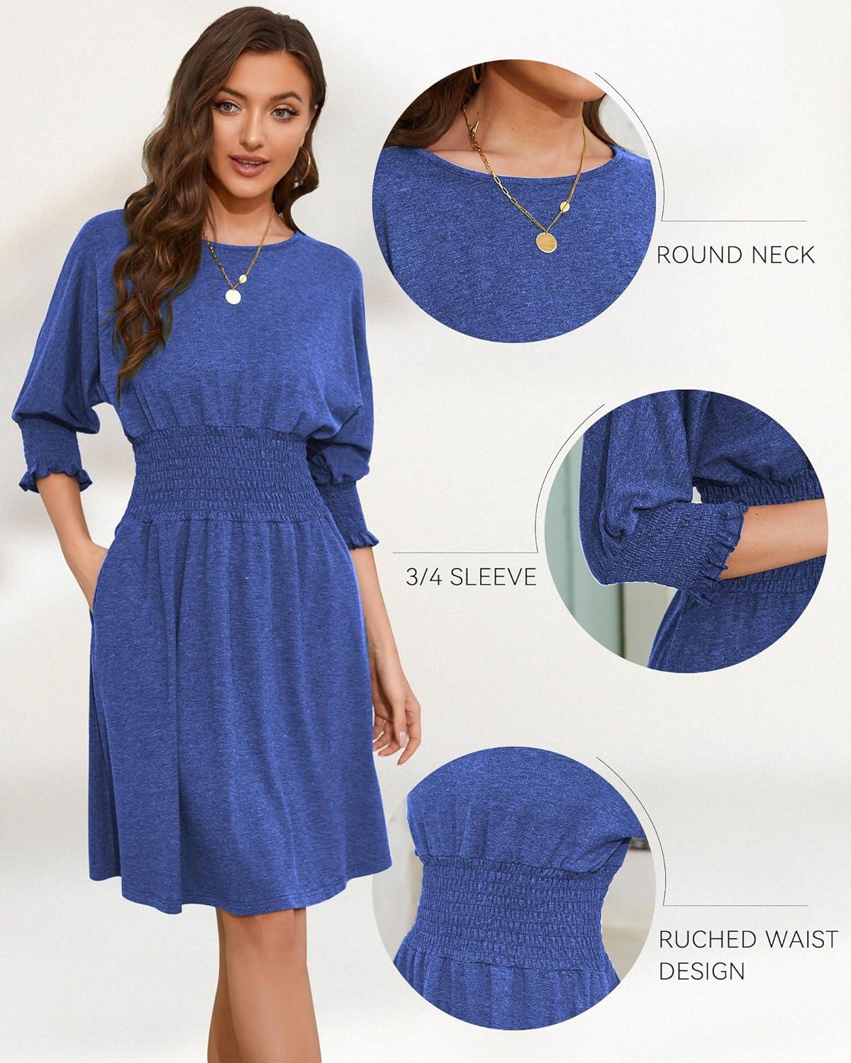 As we slipped into the Summer Dresses for Women 2025 Casual 3/4 sleeve Smocked Dress, it quickly became clear why this piece is generating buzz for the upcoming season. Combining comfort with subtle elegance, the soft cotton-spandex blend embraces the body with just the right amount of stretch, while the ruched, elastic waist effortlessly flatters a variety of shapes. The knee-length A-line silhouette and practical pockets add a functional twist to an otherwise stylish design, making it an ideal choice for casual outings, workdays, or even a laid-back party.whether worn solo in the warmer months or layered under a jacket in cooler weather, this dress offers versatility without compromising on style-a wardrobe staple that feels as good as it looks.