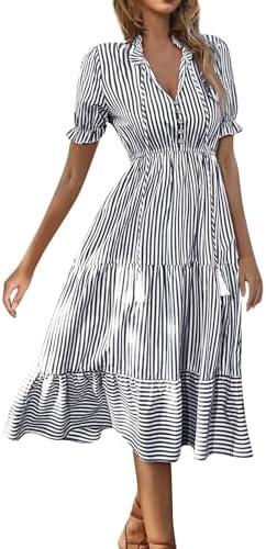 We all know that finding the right summer dress can feel like a treasure hunt. With our recent exploration of the ”Womens Summer Dresses 2024 Short Sleeve V Neck Elastic Waist Ruffle Tiered Midi Dress Striped Cocktail Party Dresses,” we’ve gathered some noteworthy insights. Here are the pros and cons that we encountered during our journey: