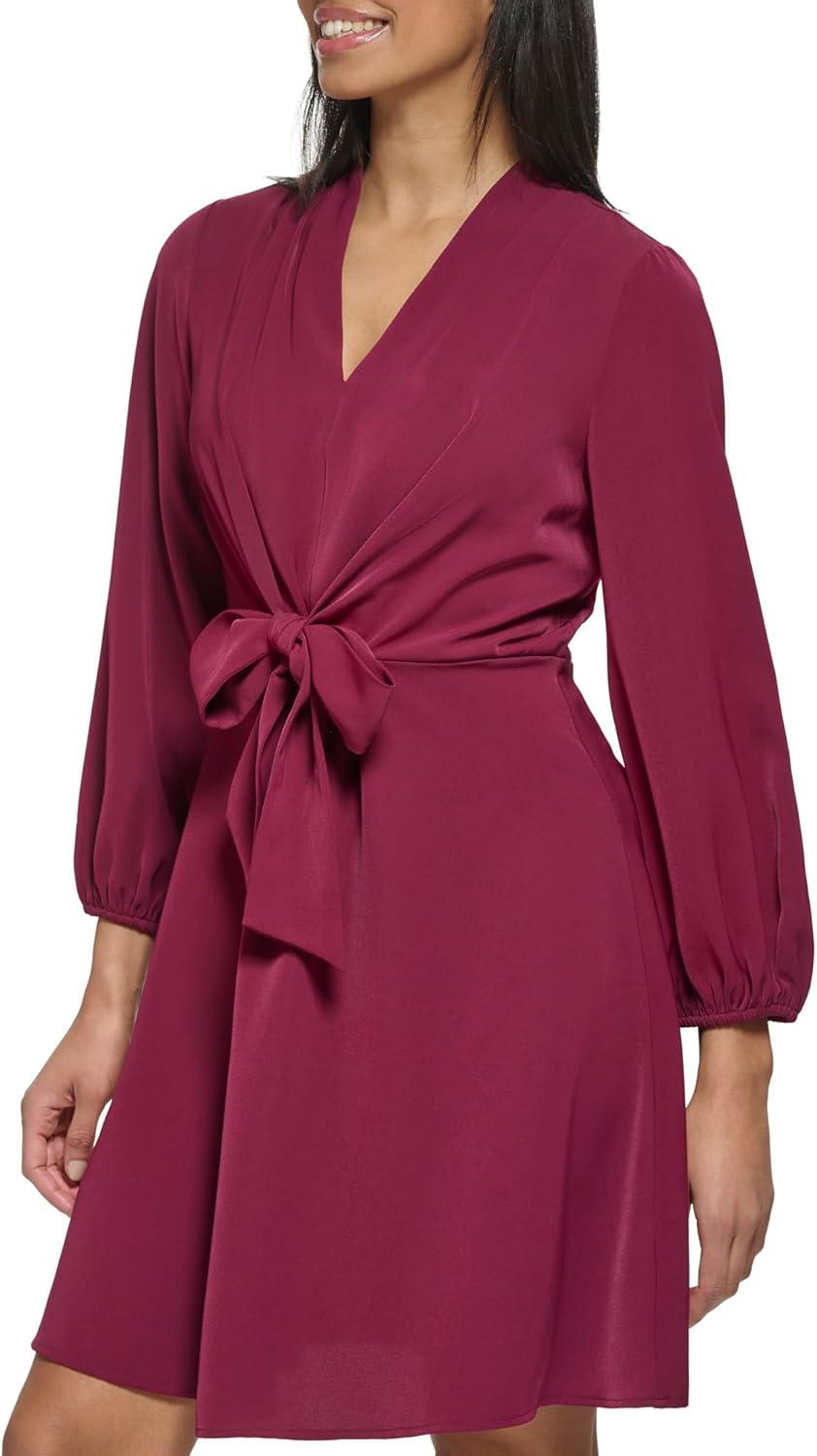 There is a small domestic gravity to pieces that join the rotation; over time the DKNY Womens Long Balloon Sleeve Front Tie Mini Dress slips into that quietly steady place. In daily wear its sleeves loosen a touch at the cuff and the fabric smooths into memory, the front tie softening where hands meet it. as it’s worn in regular routines it starts to read less like an event outfit and more like a familiar garment that cushions quick decisions about what to wear. It becomes part of the rotation.