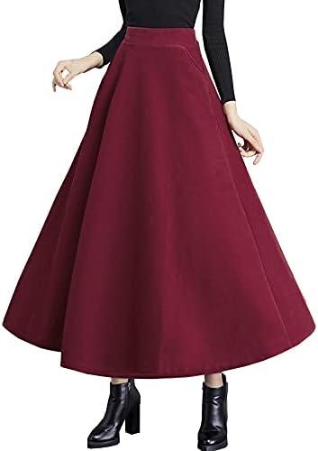 TONCHENGSD Women’s High Elastic Waist Maxi Skirt Winter Warm Wool Flare Long Skirt