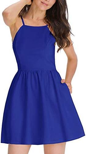 This chic and versatile dress features a backless design and spaghetti straps that add a touch of elegance. Crafted with a flattering mini skater style, it is perfect for various occasions, such as graduations, homecomings, or casual summer outings. The royal blue color lends a bold yet sophisticated look, while the lightweight fabric makes it comfortable for all-day wear. Practical elements like pockets enhance its functionality, making it suitable for stylish yet carefree moments, whether at a cocktail party or a beach gathering.
