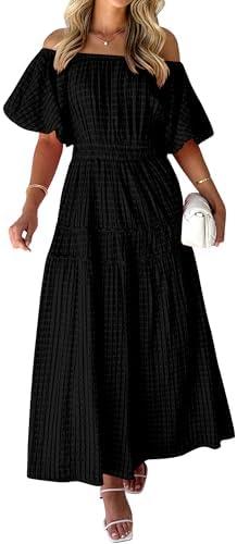 This flowy maxi dress offers a blend of comfort and style, perfect for your summer wardrobe. Crafted from a soft fabric consisting of 43% Viscose, 47% Polyester, and 10% Polyamide, it is lightweight and skin-friendly, making it ideal for warm weather. The elastic waisted design provides a flattering silhouette by enhancing your natural curves. With its off-shoulder style and puff short sleeves, this dress is designed to keep you feeling breezy and fashionable on beach outings or casual gatherings. The ruffle tiers add a touch of charm, while the ankle-length cut ensures you remain effortlessly chic.