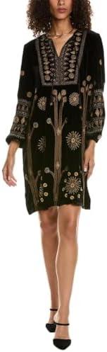 Johnny Was Womens Heidi Velvet Yoke Silk-Blend Mini Dress, L, Black, Large