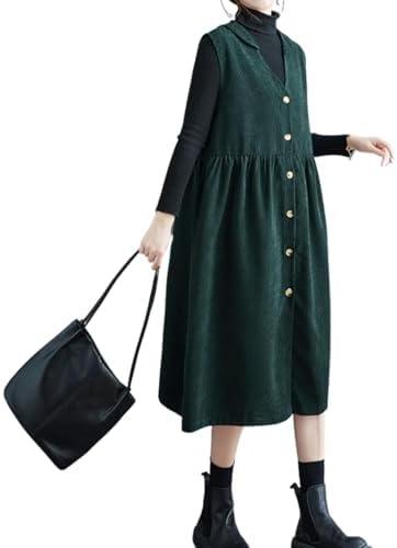 This casual yet fashionable jumper dress offers a flattering silhouette, making it an ideal choice for various occasions. The sleeveless design is perfect for warmer weather, while the corduroy fabric adds a touch of texture and sophistication. The button front placket and lapel collar enhance its overall elegance, while the high waist and beautiful swing hem ensure comfort and style. Additionally, the below-knee length and A-line flared silhouette provide versatility, allowing you to dress it up or down effortlessly. The inclusion of two side pockets is practical, making it easy to carry your essentials without the need for a bag.
