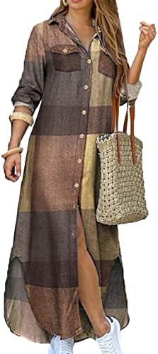 This trendy long sleeve maxi dress offers a perfect combination of style and comfort. Made from lightweight fabric, it features a loose silhouette that allows for freedom of movement while maintaining a chic appearance. The button-down design, complemented by a classic plaid pattern, adds a touch of sophistication to an otherwise casual outfit. Available in a chic khaki color and in sizes up to 3XL, the dress is suitable for a variety of body types, allowing for effortless personalization that can be styled for different occasions.