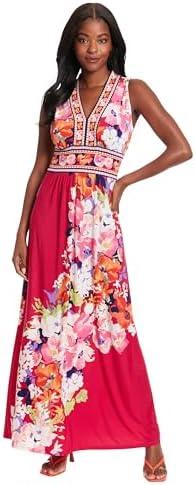 London Times Sleeveless V-Neck Maxi Casual Dresses for Women