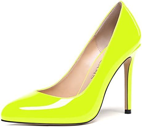 WAYDERNS Women’s Slip On Patent Round Toe Solid Stiletto High Heel Pumps Shoes 4 Inch