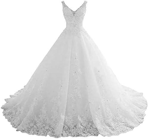 This stunning gown features a V-neckline and exquisite lace detailing that embodies elegance and sophistication. The beaded appliques not only enhance the overall aesthetic but also add a touch of sparkle, making it perfect for the modern bride. Designed without sleeves, it offers a comfortable fit while allowing freedom of movement as you celebrate your special day. The combination of high-quality materials ensures durability, ideal for a day filled with joyous activities and lasting memories.