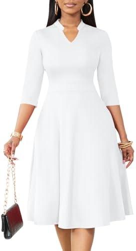 This semi-formal A-line dress is designed with versatility in mind, perfect for both church gatherings and work settings. The 3/4 sleeve provides an elegant silhouette, while the flared skirt adds to its flattering fit. Its practical pockets are a standout feature, catering to the needs of modern women who appreciate both style and convenience. The fabric and construction are thoughtfully crafted, ensuring comfort throughout wear, whether standing at a desk or mingling at an event.