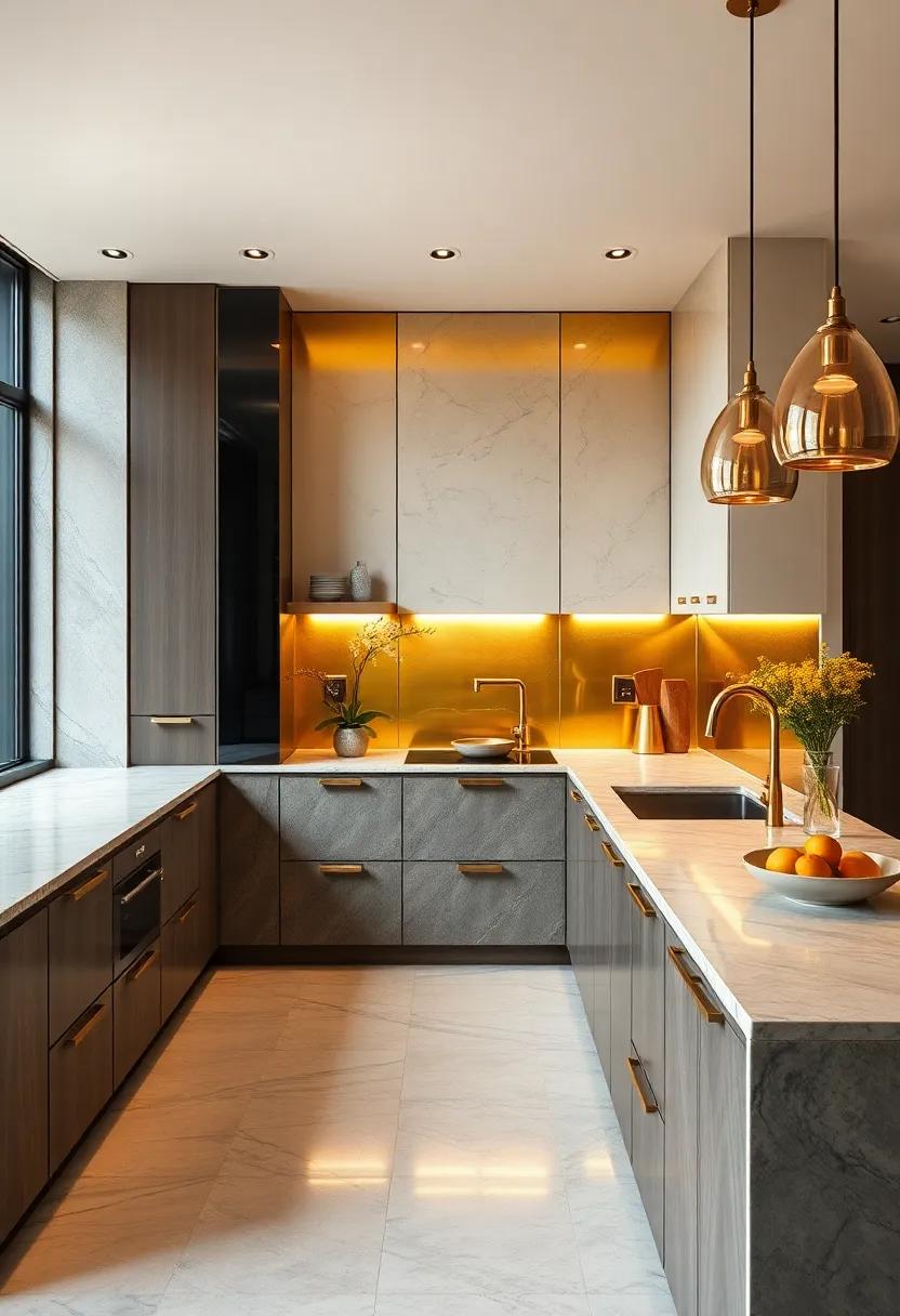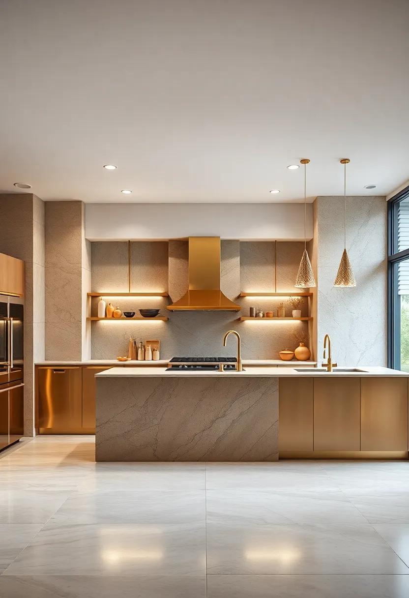 - Backsplashes: Subtle gold patterns or metallic tiles that radiate warmth and sophistication.