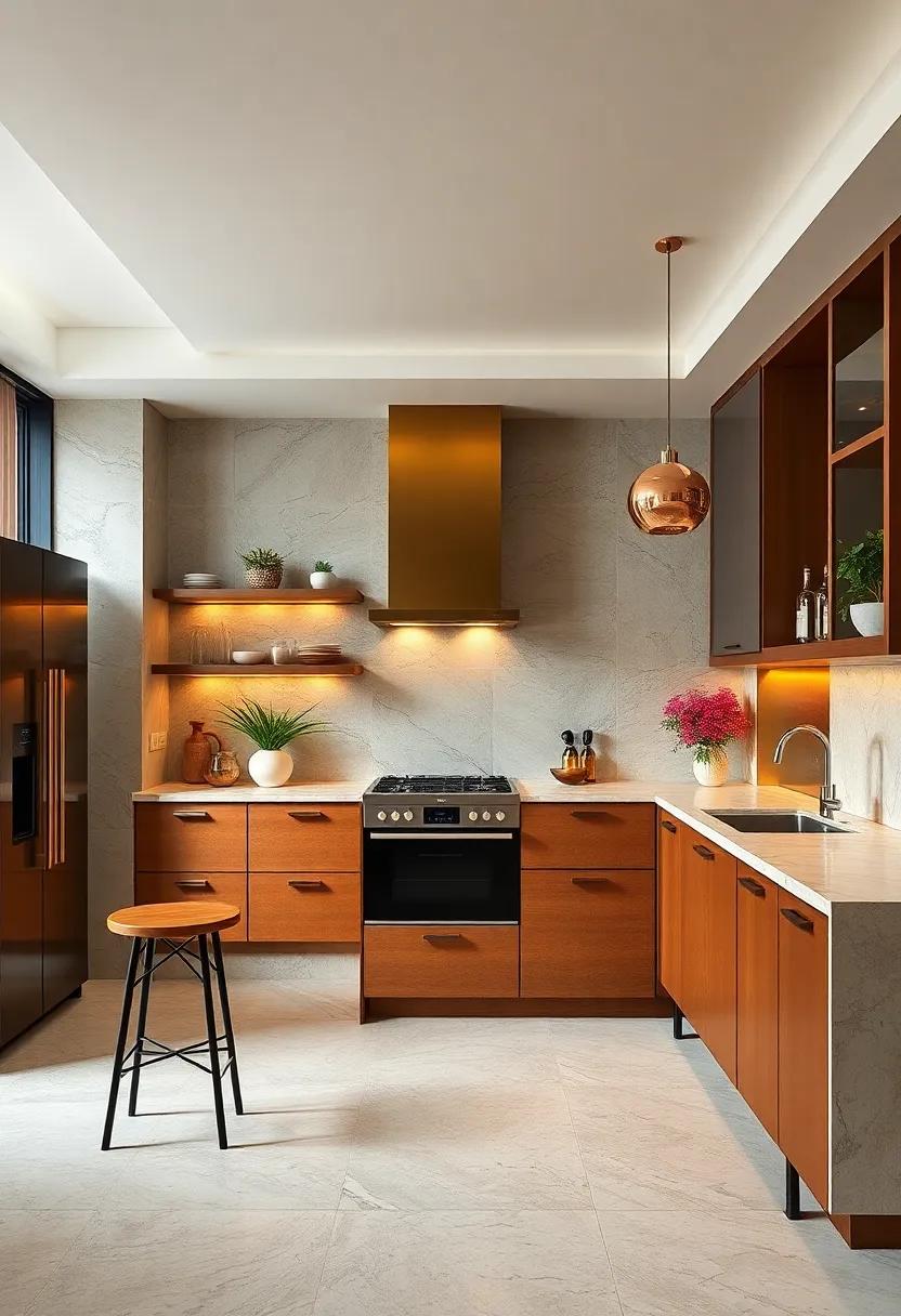 To further enhance this harmonious blend, include elements such as greenery and organic materials that promote a sense of tranquility and well-being. By introducing houseplants or herb gardens, you not only add life to your kitchen but also offer a refreshing counterpoint to the metallic finishes. A well-placed wooden dining table with gold accents can bridge the gap between luxury and nature, making the space both functional and aesthetically pleasing. Experiment with different textures and finishes to create a balanced look that uniquely reflects your style.