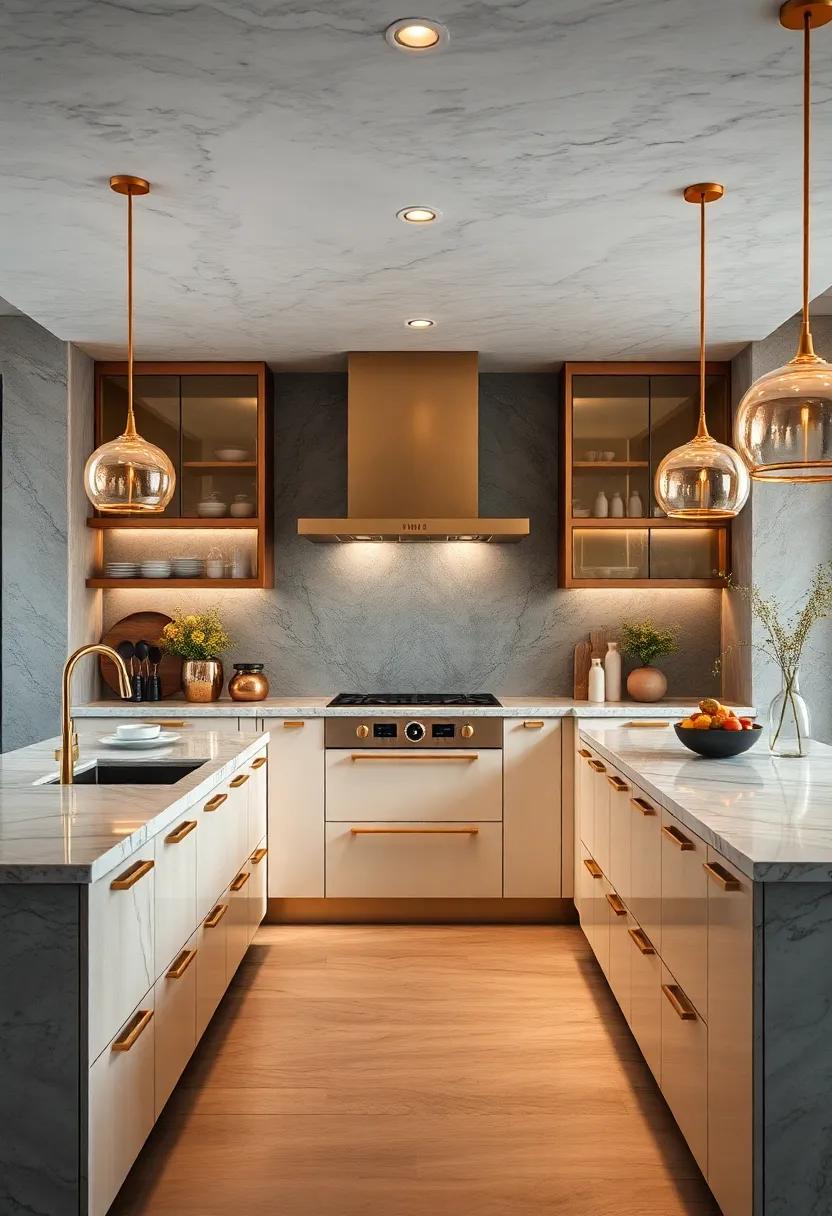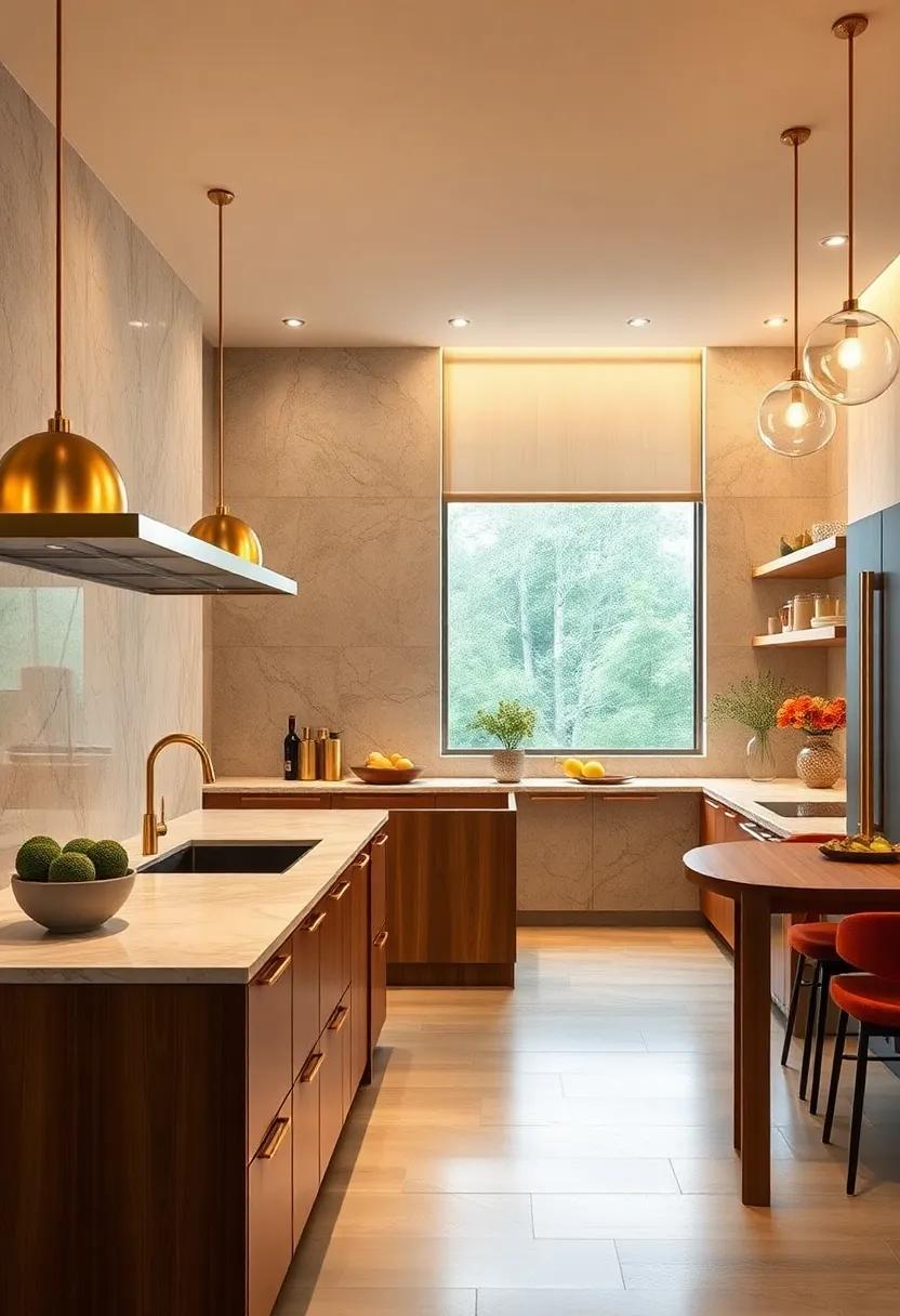 - Light Fixtures: Pendant lights in gold shades add both warmth and a chic statement above cooking and dining areas.