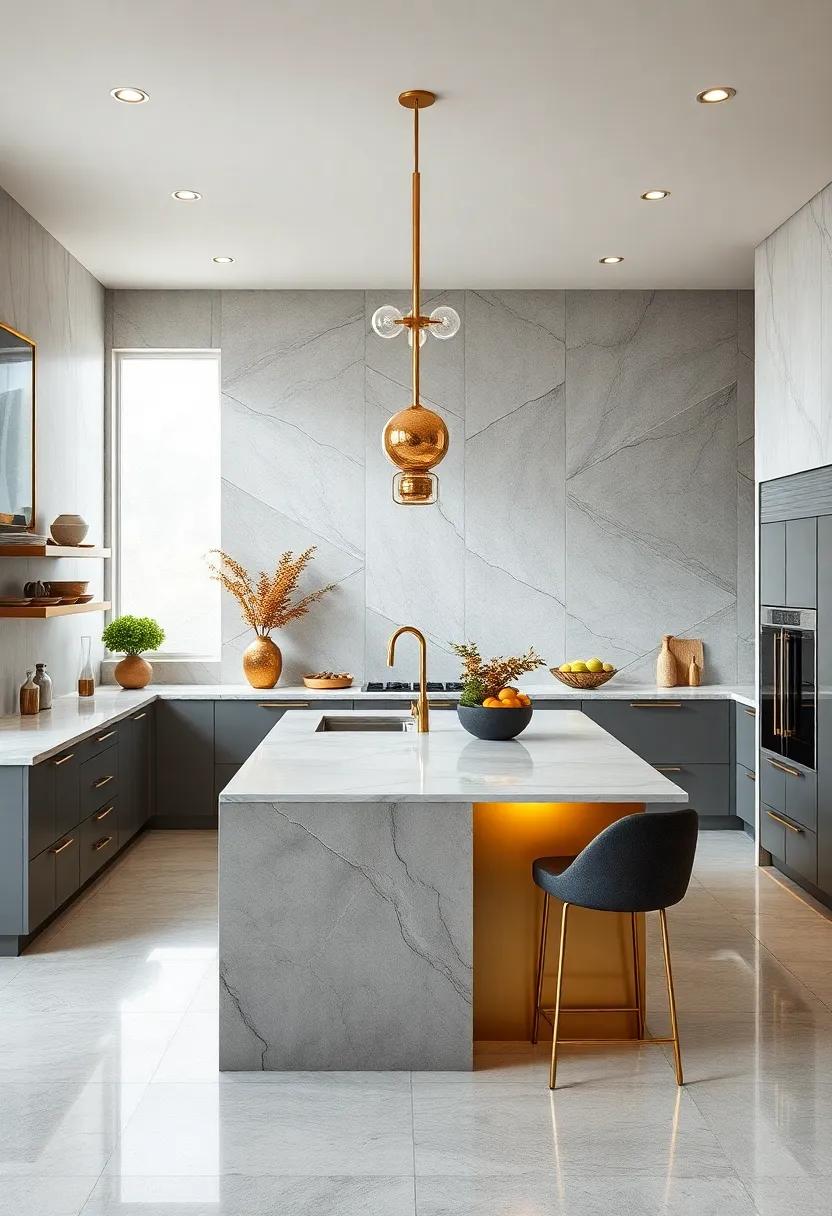 - Backsplash tiles: Use gold-streaked glass or metallic tiles for a bold statement.