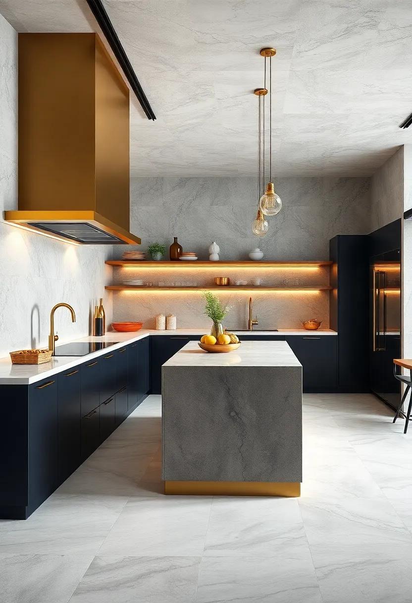 - Industrial Flair: Combine sleek stainless steel appliances with gold pipework for a bold statement.