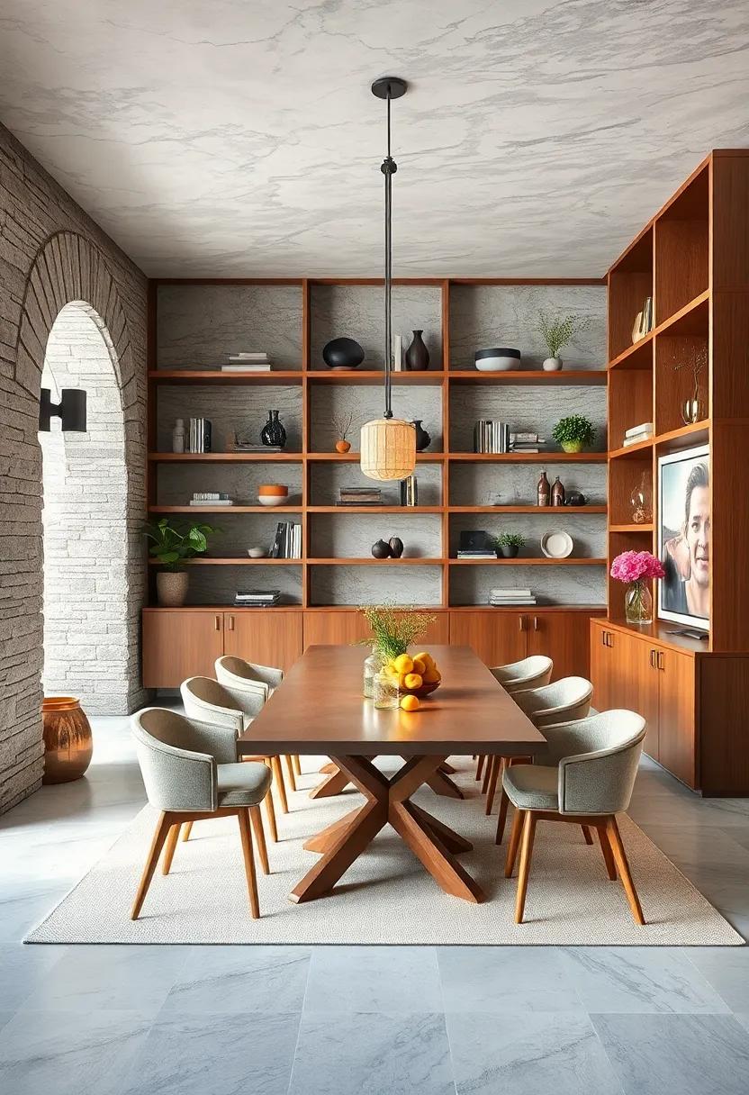 A Blend of Old and New: Vintage Open Shelving in Modern Dining aesthetics