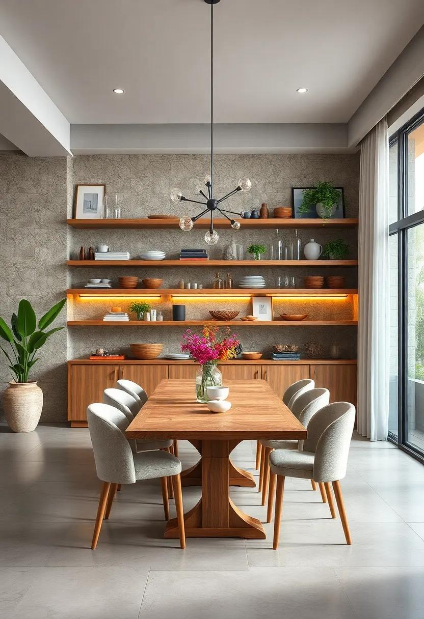 Open shelving is a dynamic solution for showcasing your everyday dining essentials, transforming the mundane into a statement of style. By displaying items like dinnerware, glassware, and even cookbooks, you create an inviting atmosphere that encourages both functionality and aesthetics. Consider artfully arranging your pieces by combining varying heights and textures. The result not only enhances accessibility for your daily meals but also allows you to curate a visual narrative that reflects your personality.