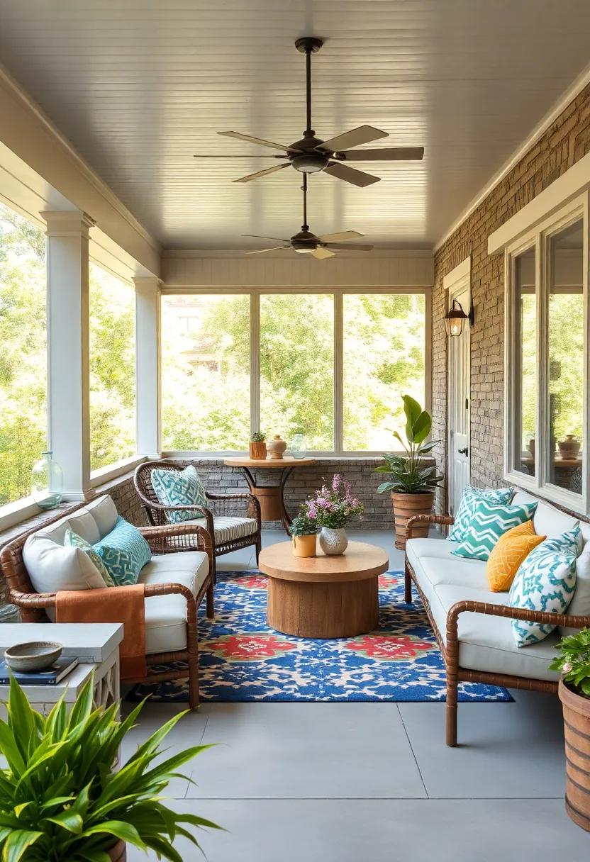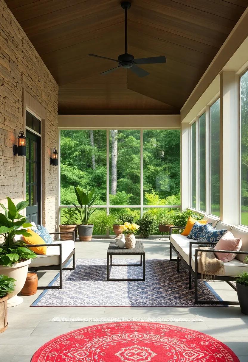 Infusing your outdoor space with lively designs can create an inviting atmosphere that energizes your environment. A vibrant outdoor rug featuring playful patterns can serve as an excellent focal point. Imagine an array of bold colors—a vivid geometric design or whimsical florals—that draws the eye and enhances the natural beauty of your screened porch. These rugs not only provide comfort underfoot but also act as a canvas for your decor choices, inviting you to mix and match with colorful cushions and playful accents.