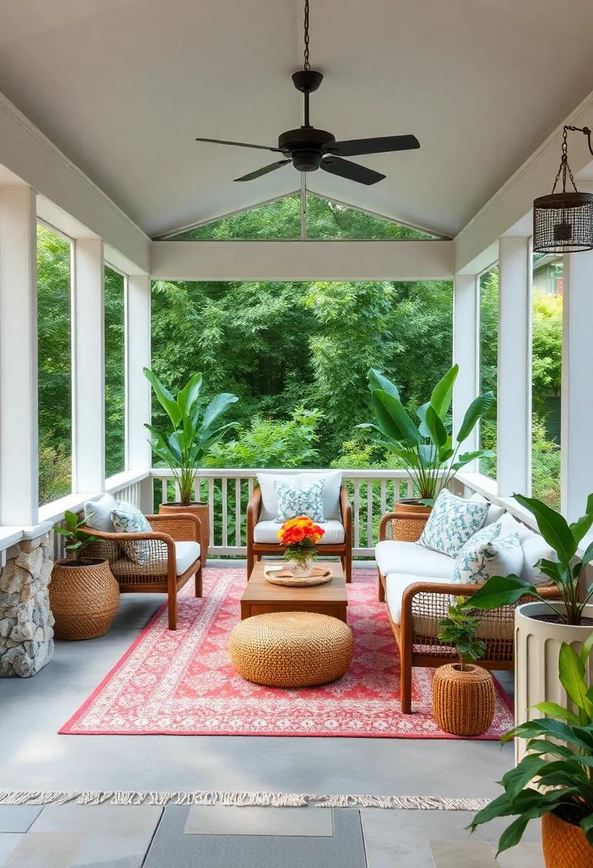 Incorporating artistic rugs into your screened porch design can transform the space from ordinary to extraordinary. These rugs can serve as a captivating focal point, inviting guests to gather and enjoy the surroundings. Consider patterns and textures that not only complement your existing decor but also reflect your personal style. Whether you’re drawn to bold geometric shapes or delicate floral motifs, an artistic rug can set the tone for relaxation and conversation.