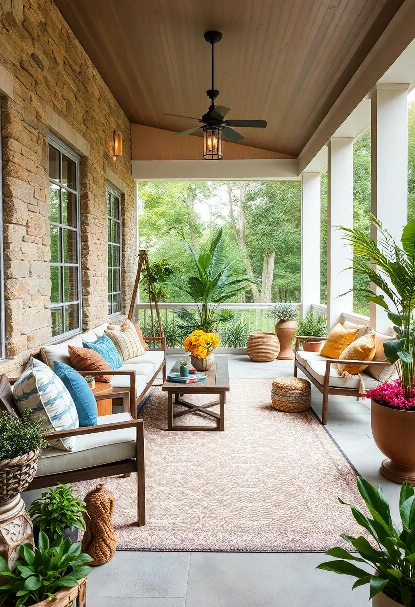 By thoughtfully layering your space with these elements, you’ll not only enhance the comfort and visual appeal of your porch but also create an environment that invites relaxation and conversation.