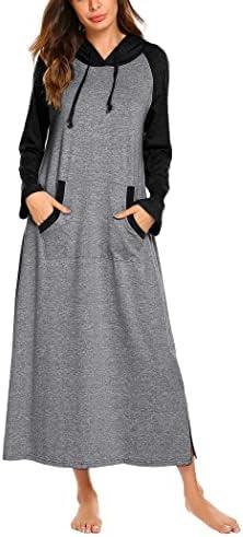 This full-length nightgown is designed with a relaxed fit, making it the perfect choice for various occasions such as lounging at home, enjoying a cozy evening, or even casual outings. Its hood adds a trendy twist, while the contrast color detailing enhances its visual appeal. The inclusion of a pocket is a functional bonus, allowing you to keep small essentials nearby. It’s versatile enough to wear during recovery after surgery or throughout pregnancy, adapting to your needs as comfort remains a priority.