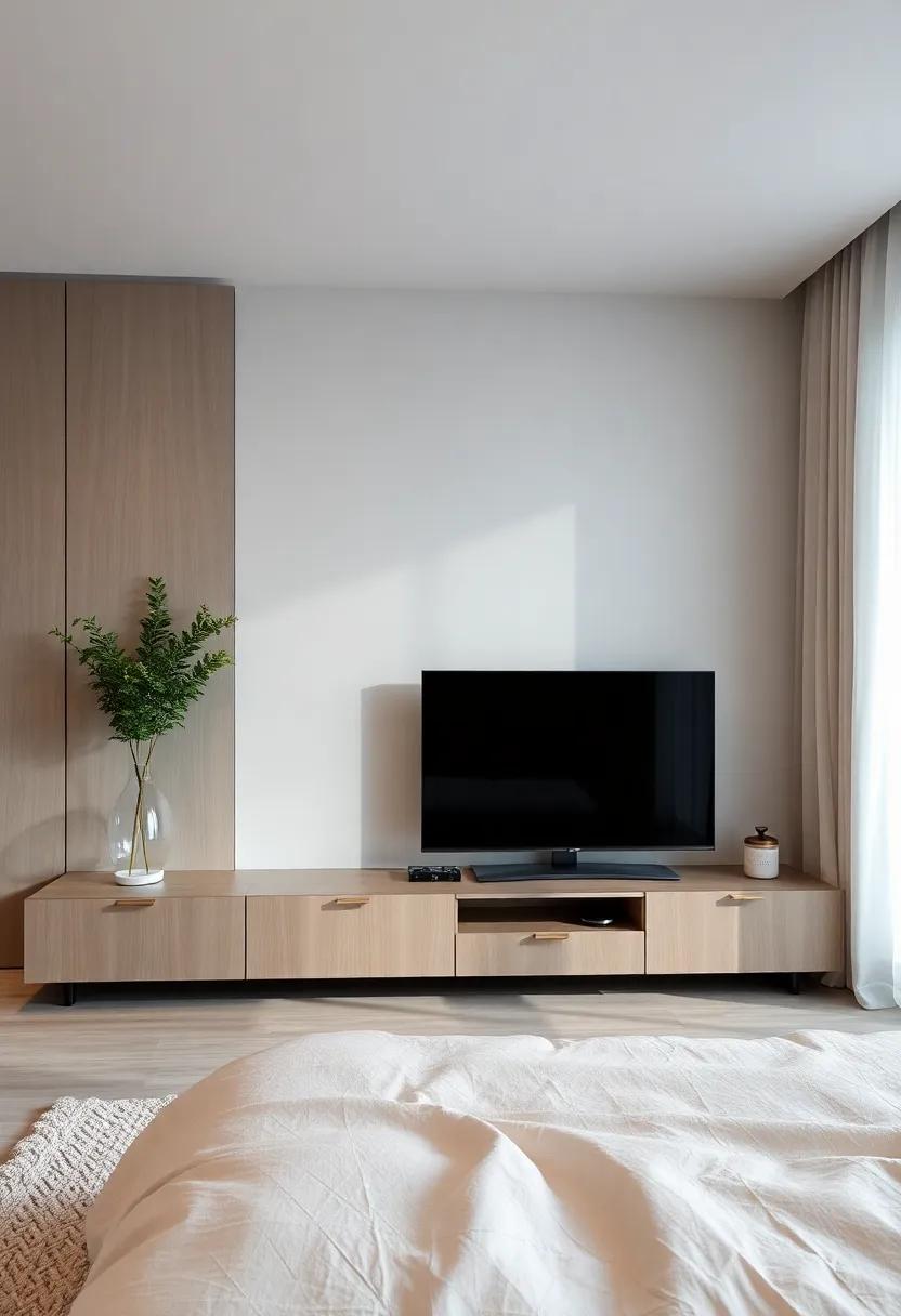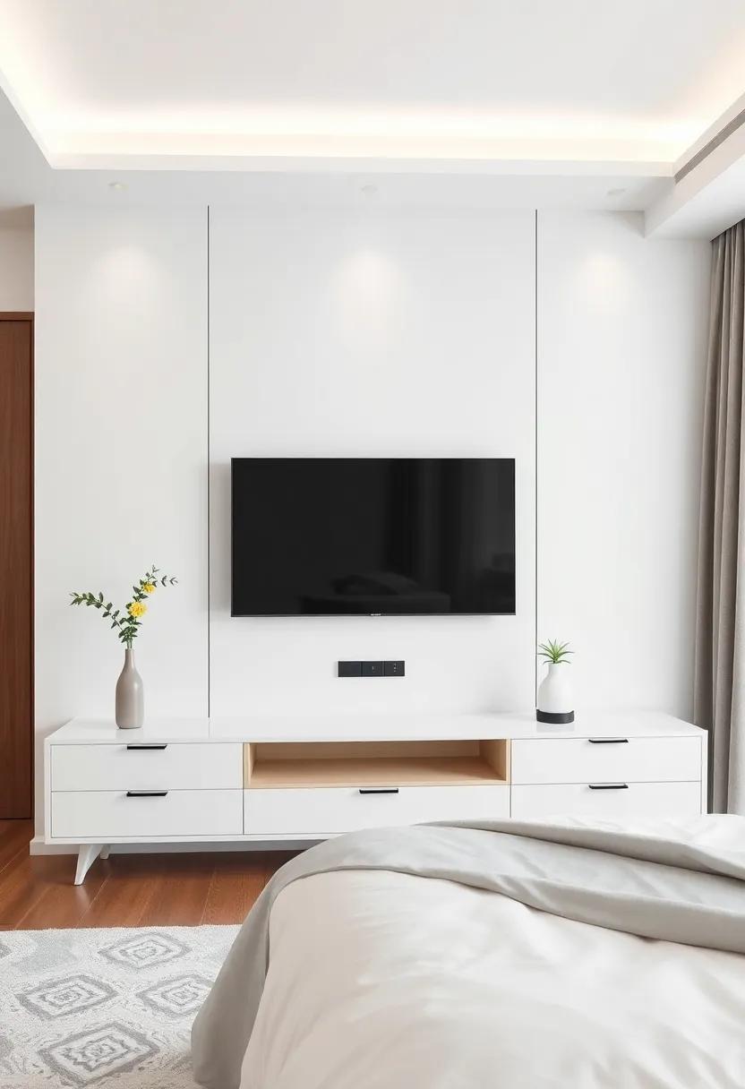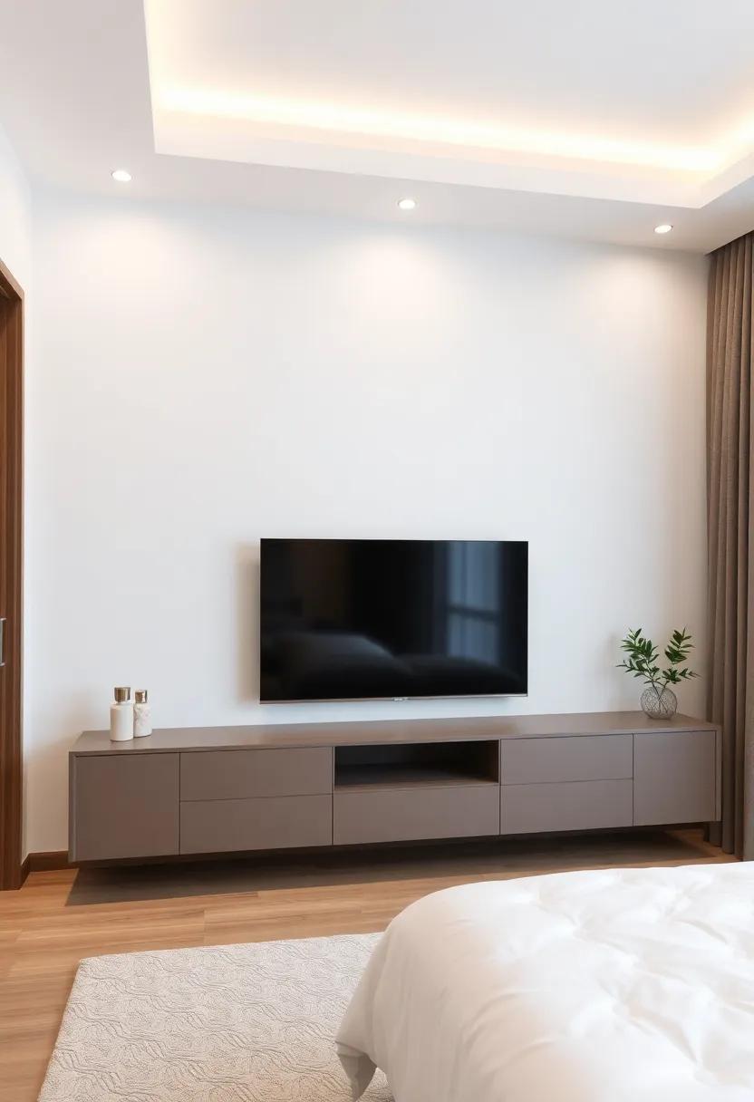To keep the design cohesive, ensure that your chosen colors work well with both your bedroom furniture and the TV unit.A well-thought-out color palette can elevate your room’s look, making it feel like a curated space rather than an afterthought. You might also want to consider the lighting in your room; natural light can soften bold colors, while artificial light can make softer tones pop.