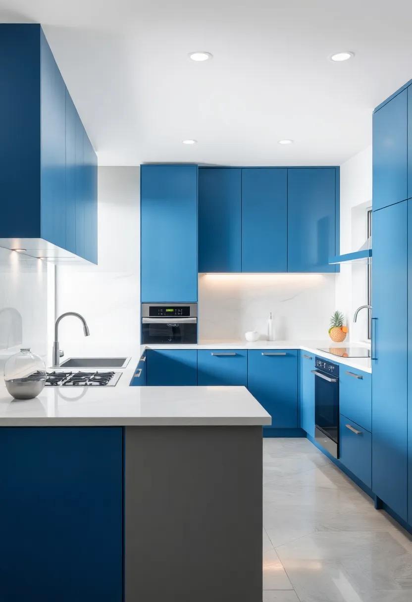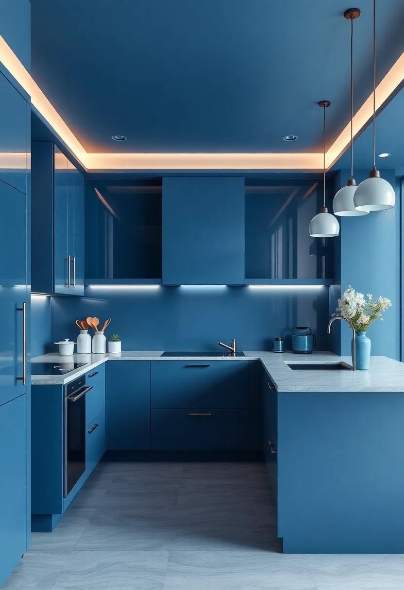 | Glossy Blue Cabinets | Brightens the space, enhancing natural light. |