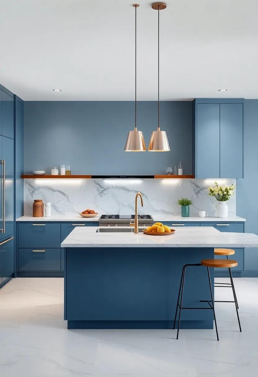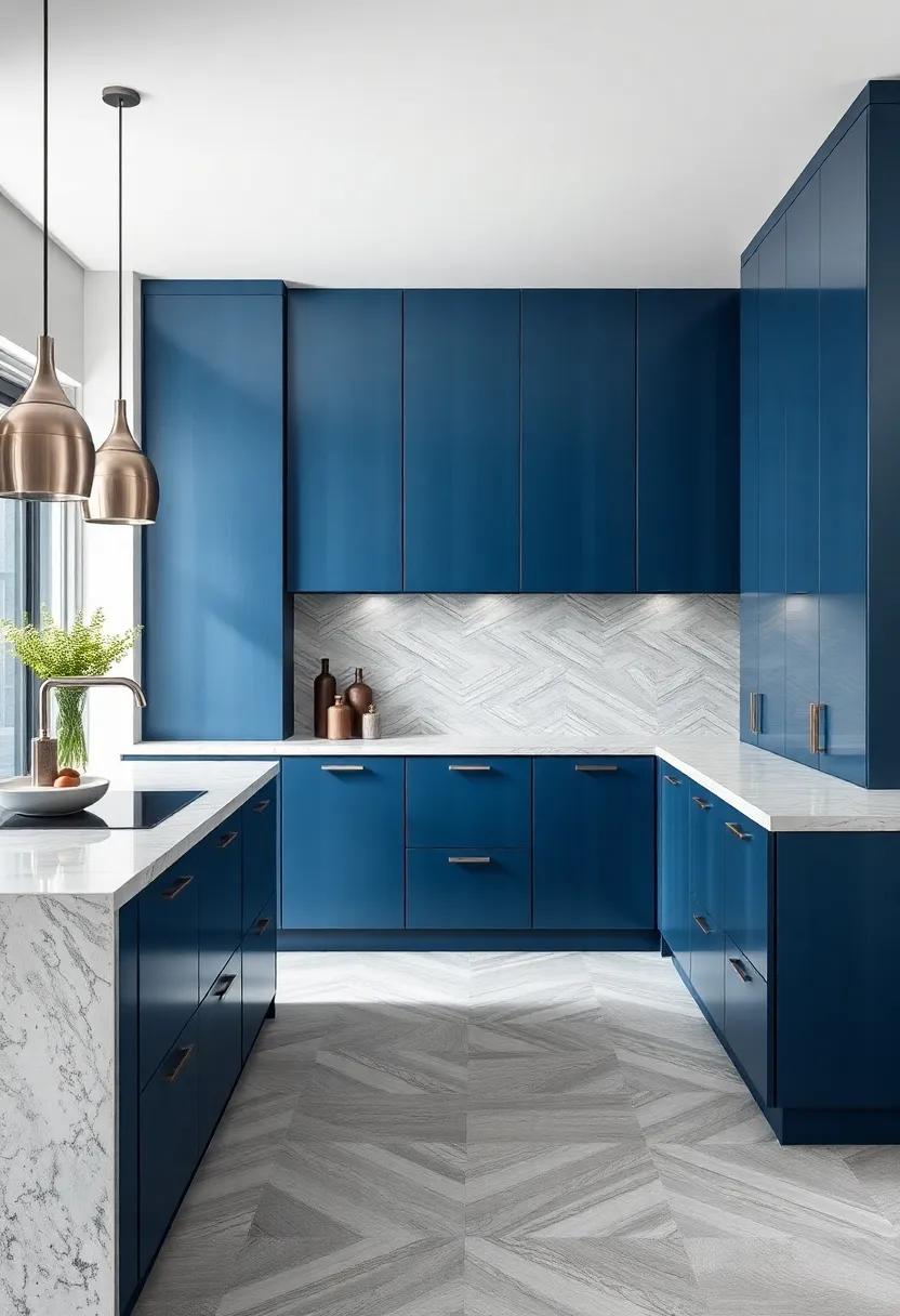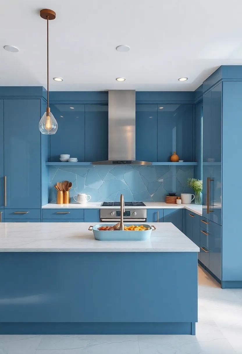 Don’t overlook the importance of lighting in conveying luxury; opt for statement pendant lights or under-cabinet lighting that enhances the color tones and creates a warm ambiance. To further enhance cohesiveness, consider creating a focal point with a stunning backsplash that wraps around the kitchen space, tying together the blue and gray hues.Below is a simple table that outlines key elements to consider for a luxurious finish: