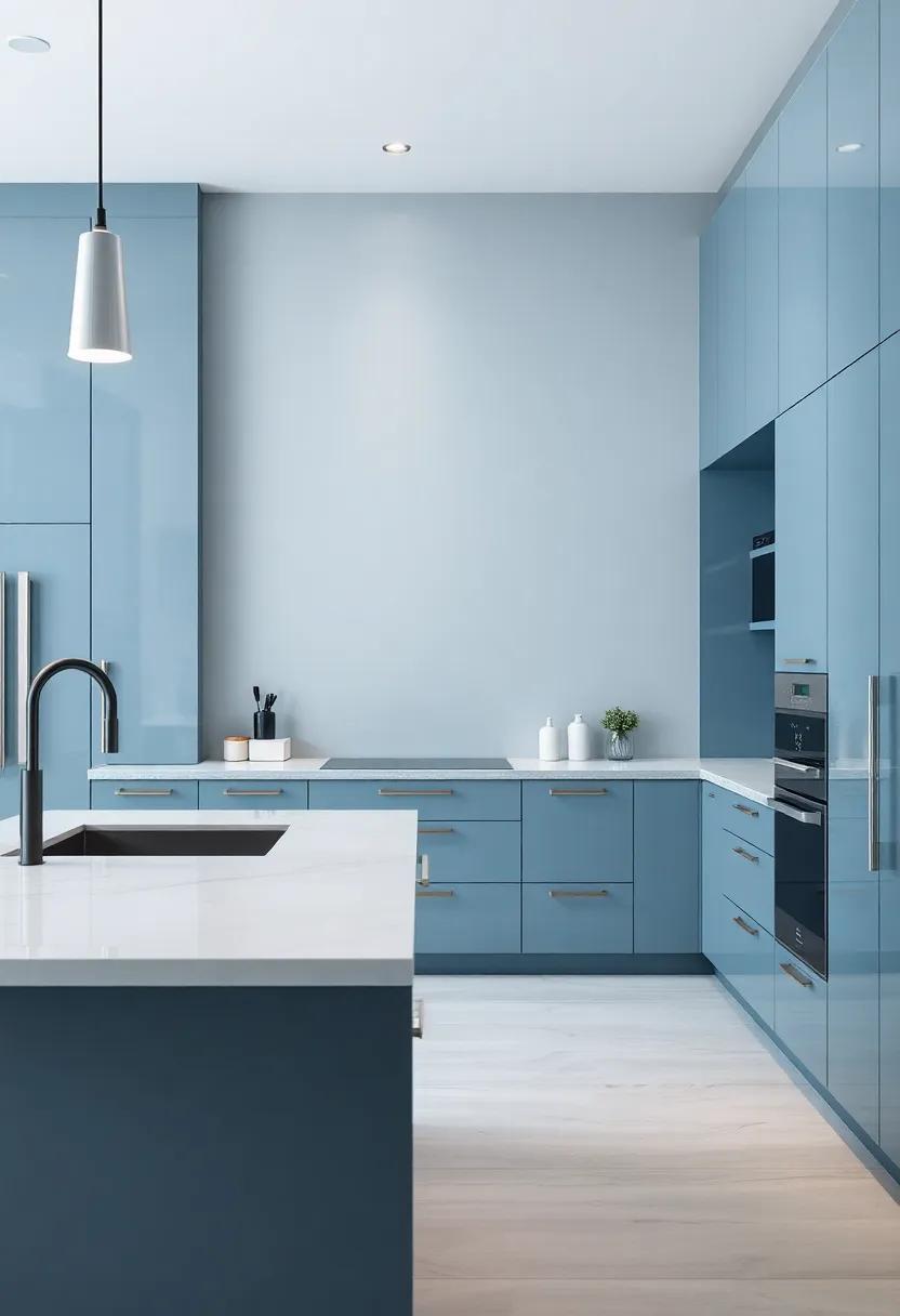 achieving a captivating visual harmony in your kitchen design involves the artful interplay of blue and gray tones. These colors, reminiscent of serene skies and tranquil waters, can evoke feelings of calm and balance. To ensure that each hue complements the other effectively, consider incorporating different shades and textures. For instance, pairing a soft, muted gray for cabinetry with rich, navy blue accents can create an alluring contrast, while adding metallic elements like brushed nickel or brass can elevate the elegance. Along with the colors, integrating natural materials, such as wood and stone, provides warmth and depth, enhancing the overall aesthetic further.