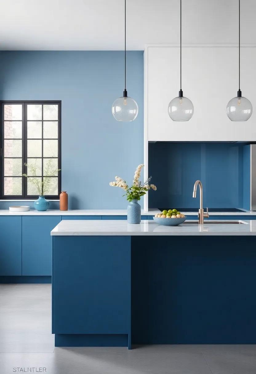 In pairing these lighting choices with your blue and gray decor, think about a warm color temperature to create a cozy ambiance. Consider using soft white LED bulbs to avoid overpowering the cool tones of your palette.You might also explore the use of dimmer switches to easily adjust lighting levels for different occasions, transforming your kitchen from a bustling cooking hub to a warm gathering space. Creating layers of light through a combination of fixtures will not only foster an inviting atmosphere but also emphasize the depth and richness of your design elements, celebrating the luxury of blue and gray.