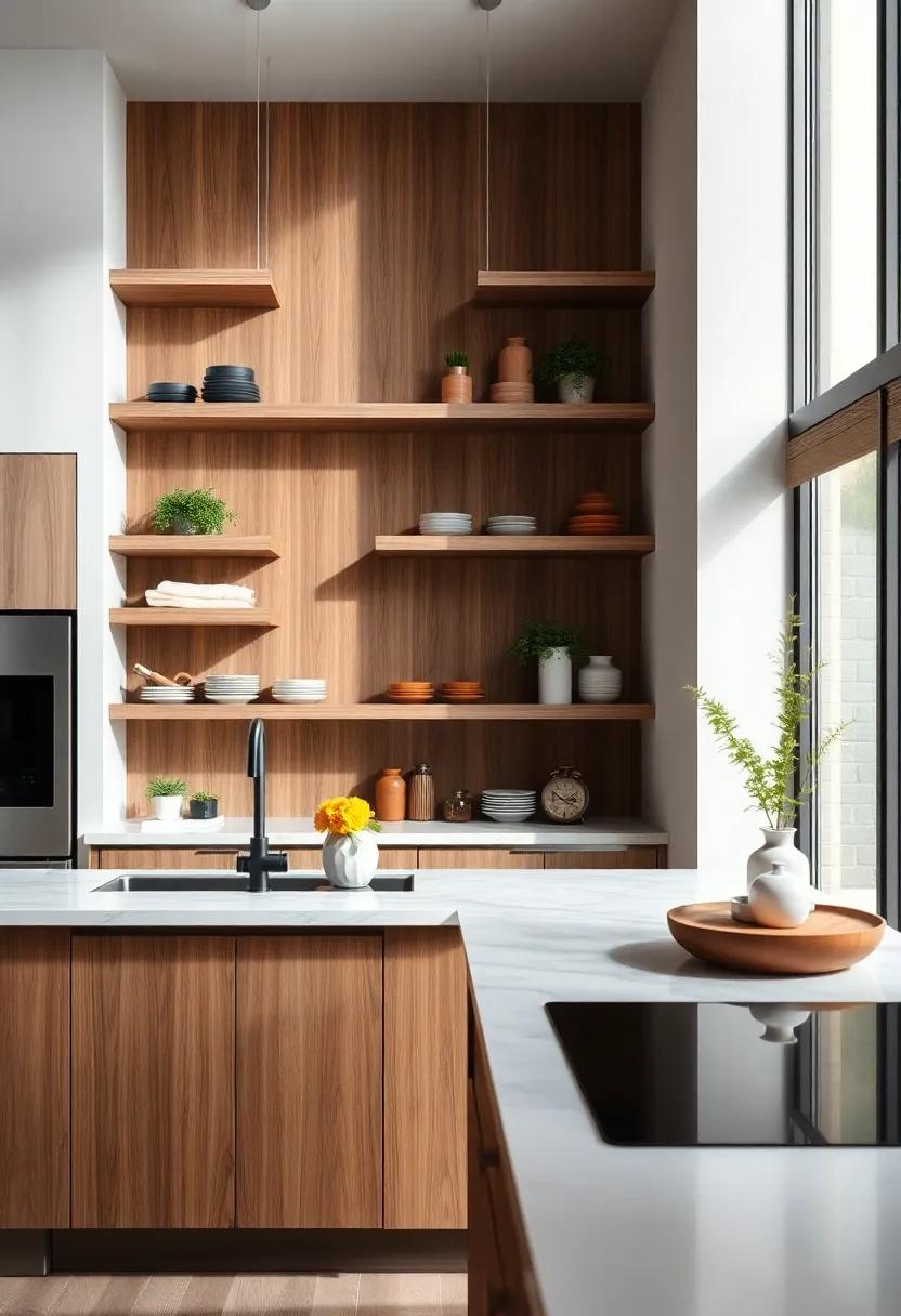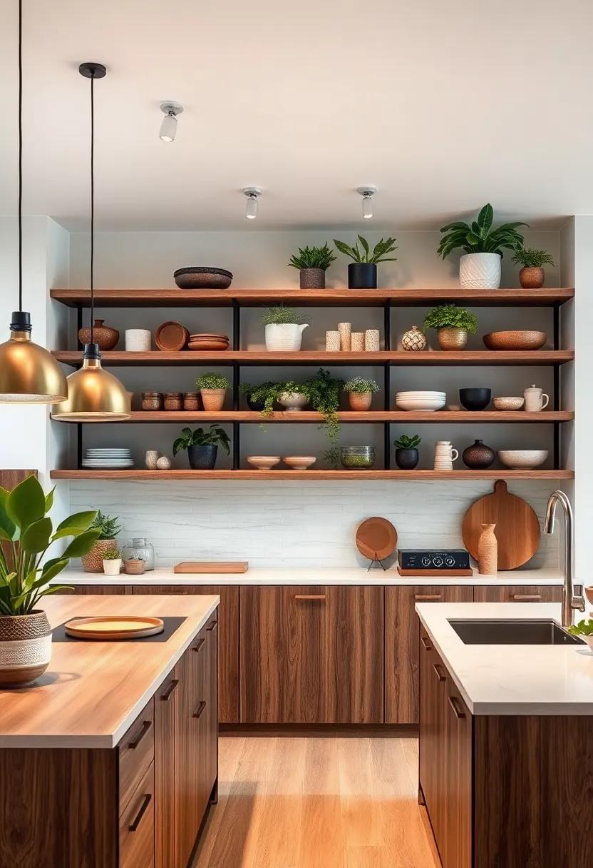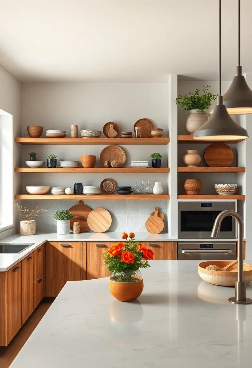 incorporating Natural Elements: Wood And Plants In Open Shelving design