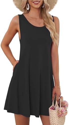 AUSELILY Women Summer Casual T Shirt Dresses Beach Cover up Plain Pleated Tank Dress